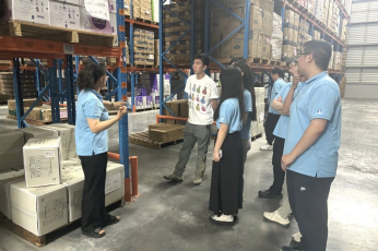 物流中心仓储二部经理-胡克利带明日之星参观面积近3万平方米的物流中心,了解物流中心的工作流程并见证中亿孕婴童的快速发展。